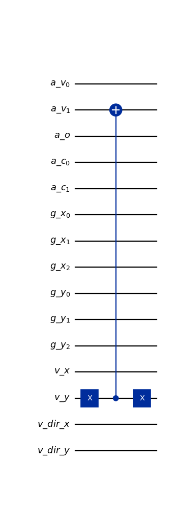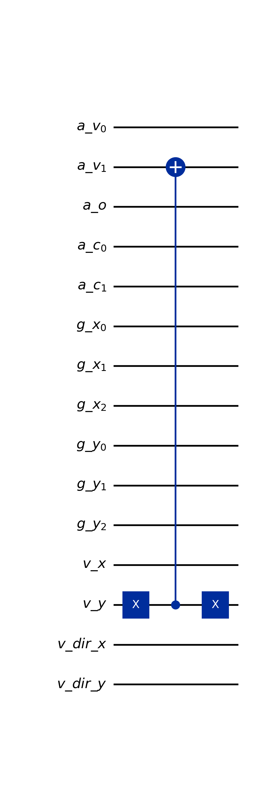 A multi-controlled \(X\) gate flips the obstacle ancilla qubit, controlled on the qubits set in the previous steps.