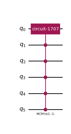 from qlbm.components.common import EQCRedistribution from qlbm.lattice import LatticeDiscretization from qlbm.lattice.eqc import EquivalenceClassGenerator # Generate some equivalence classes eqcs = EquivalenceClassGenerator( LatticeDiscretization.D3Q6 ).generate_equivalence_classes() # Select one at random and draw its circuit in the schematic form EQCRedistribution(eqcs.pop(), decompose_block=False).circuit.draw("mpl")