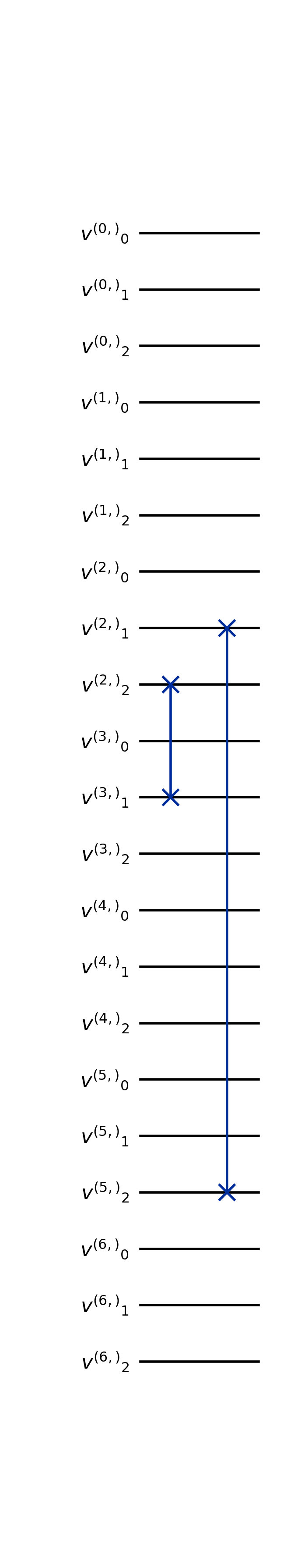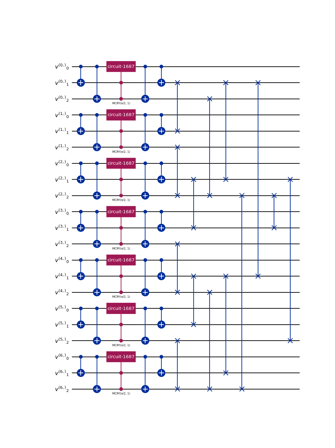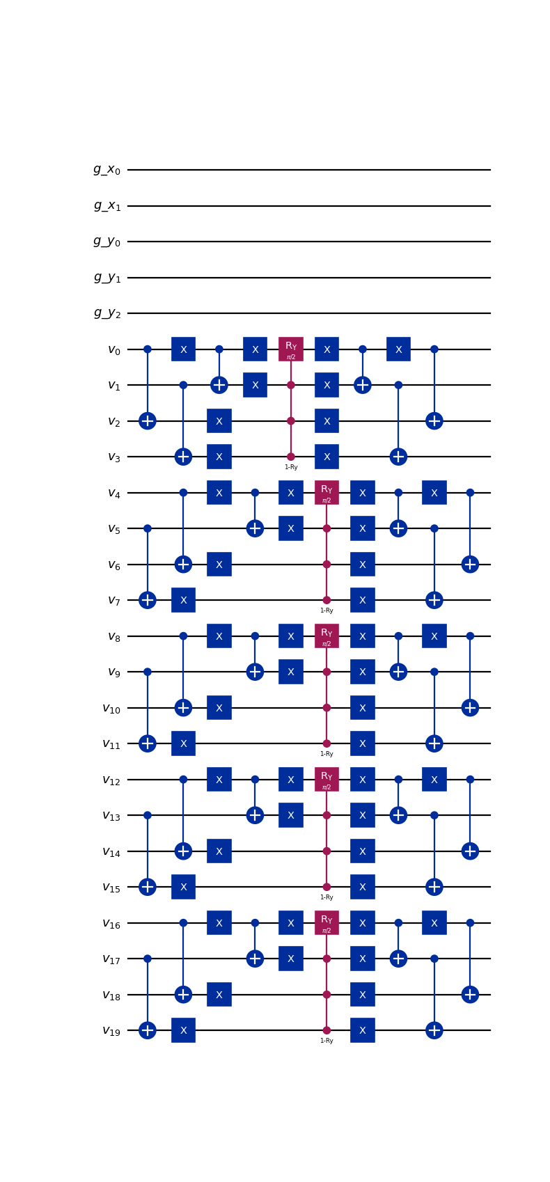 For each group of qubits, the states encoding velocities belonging to a particular equivalence class are first isolated with a series of \(X\) and \(CX\) gates. This leaves qubits not affected by the rotation in \(\ket{1}^{\otimes n_v-1}\) state.