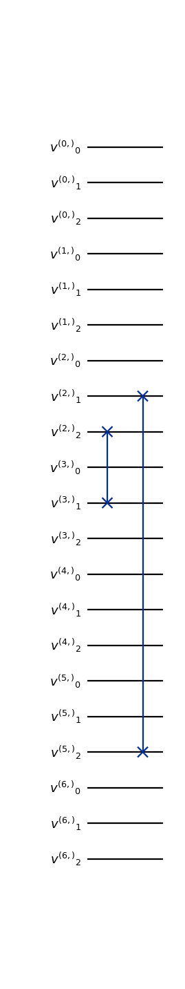 from qlbm.components.lqlga import LQLGAReflectionOperator from qlbm.lattice import LQLGALattice lattice = LQLGALattice( { "lattice": { "dim": {"x": 7}, "velocities": "D1Q3", }, "geometry": [{"shape": "cuboid", "x": [3, 5], "boundary": "bounceback"}], }, ) reflection_operator = LQLGAReflectionOperator( lattice, shapes=lattice.shapes["bounceback"] ) reflection_operator.draw("mpl")
