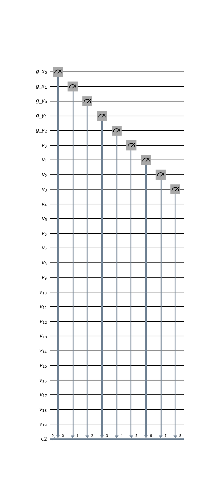 from qlbm.components.spacetime import SpaceTimeGridVelocityMeasurement from qlbm.lattice import SpaceTimeLattice # Build an example lattice lattice = SpaceTimeLattice( num_timesteps=1, lattice_data={ "lattice": {"dim": {"x": 4, "y": 8}, "velocities": "D2Q4"}, "geometry": [], }, ) # Draw the measurement circuit SpaceTimeGridVelocityMeasurement(lattice=lattice).draw("mpl")