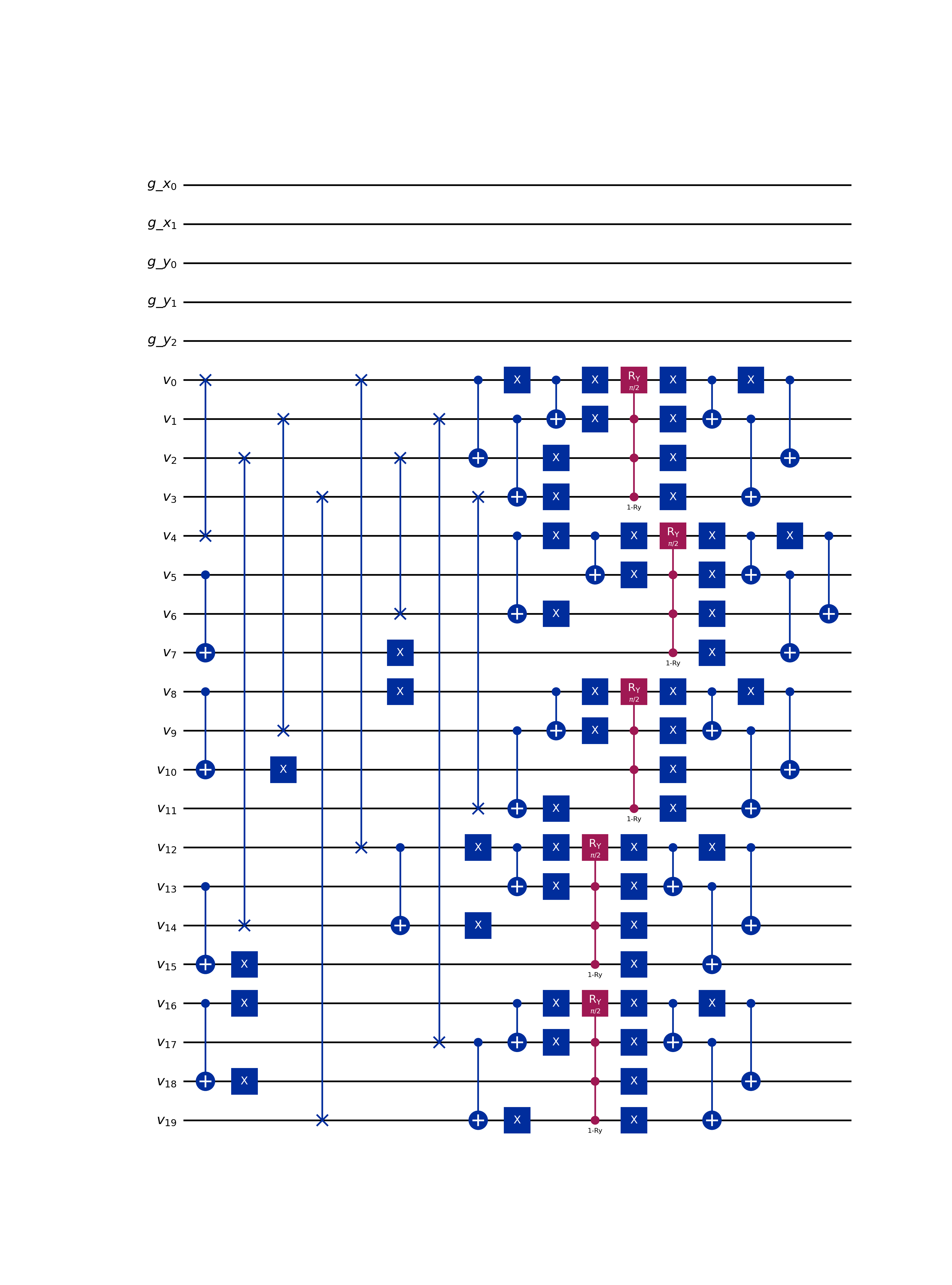 LQLGAalgorithm.This operator allows the construction of arbitrary deterministic initial conditions for the LQLGA algorithm. The number of gates required by this operator is equal to the number of enabled velocity qubits across all grid points. The depth of the circuit is 1, as all gates are applied in parallel at each grid point.